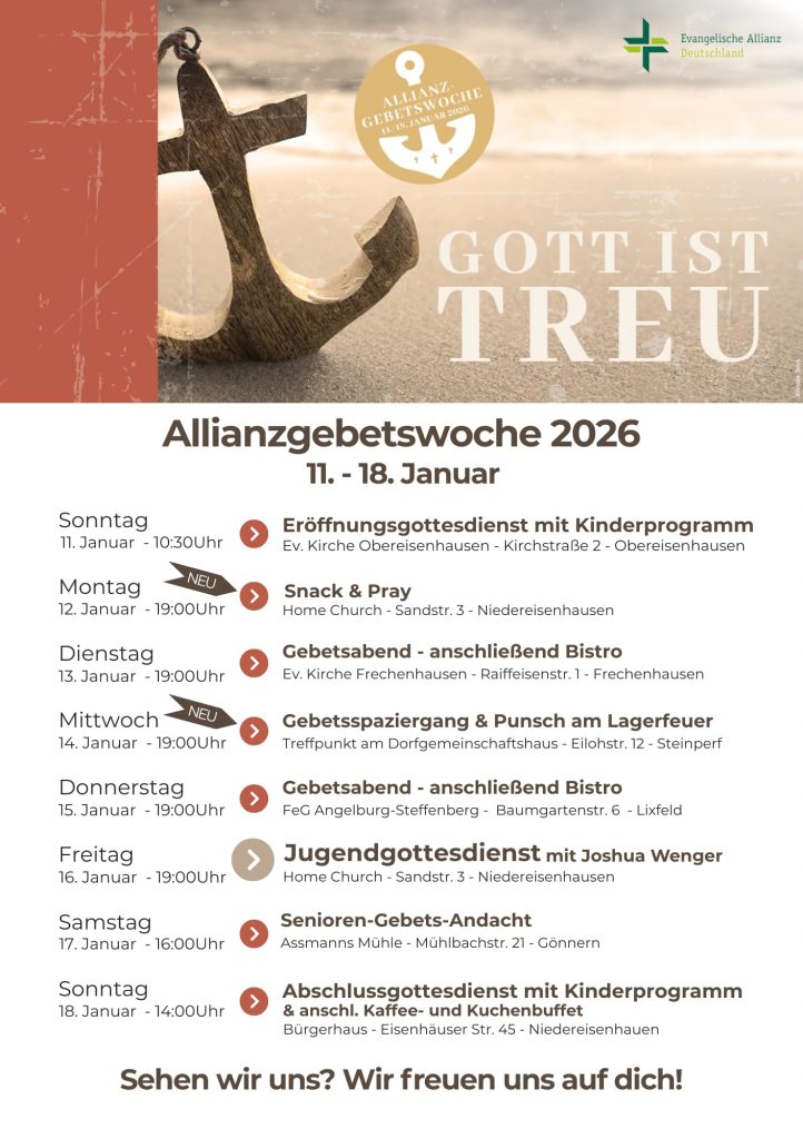 Egal, wer du bist und wo dein Weg hinführt: Wir würden uns freuen, dich kennenzulernen. Wir lieben Kirche und das Potential, das Gott in sie hineingelegt hat. Stillstand gehört nicht dazu, deshalb feiern wir jeden Sonntag diesen großen Gott und sind begeistert, dass viele Menschen unterschiedlicher Generationen hier im mittelhessischen Hinterland zusammenkommen, um mehr von ihm zu erleben.